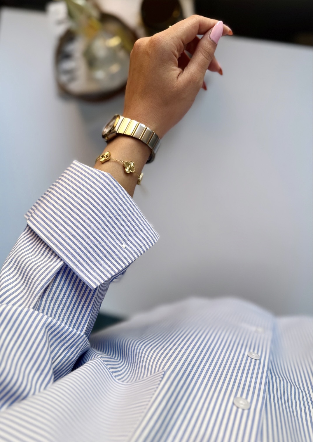 شومیز راه راه آبی آسمانی طرح لامِر