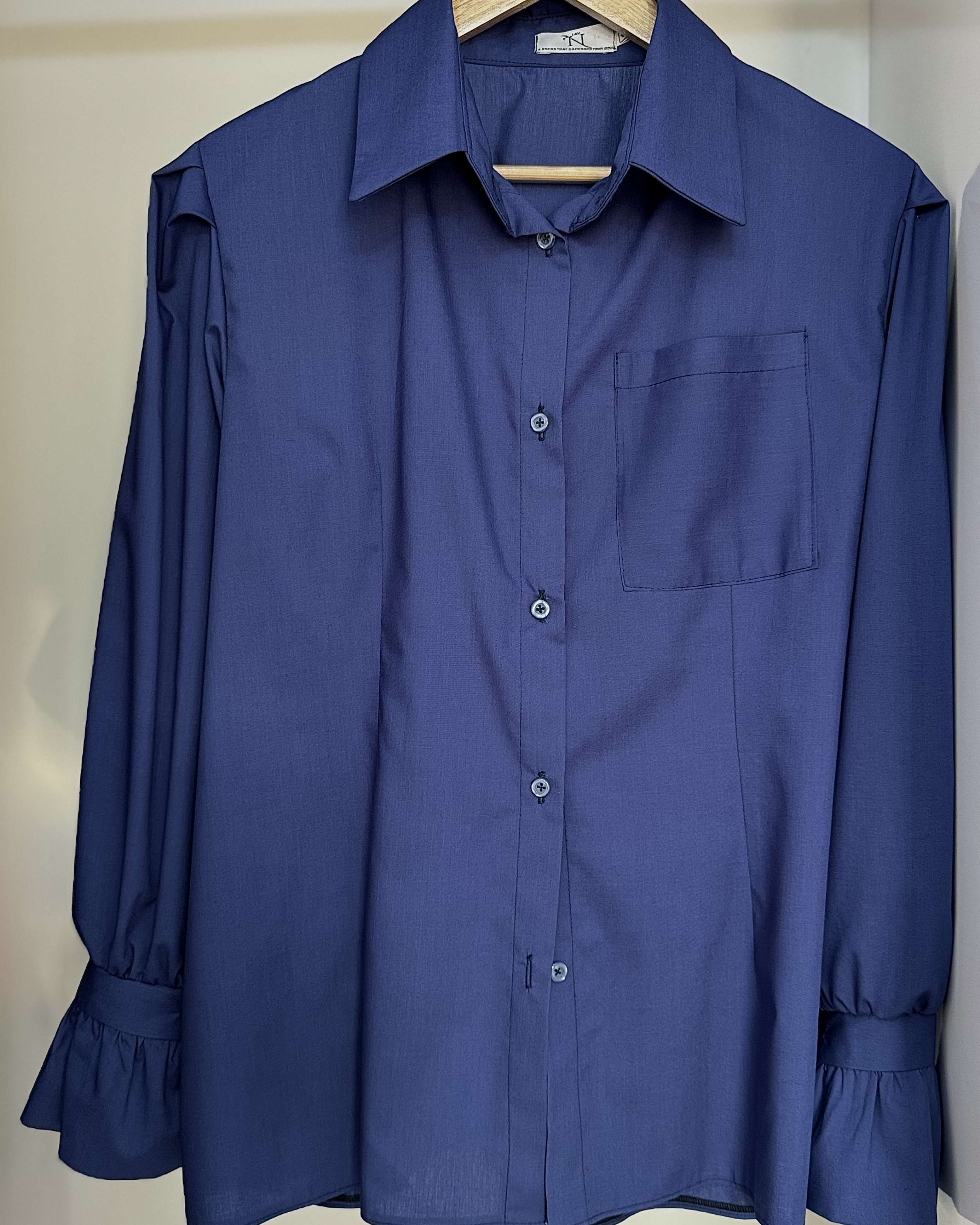 شومیز زنانه آبی آستین بلند طرح لیدیا